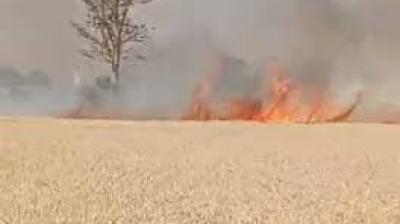 धमधा के खिलोरा खुर्द में भीषण आग, 500 एकड़ गेहूं की फसल राख