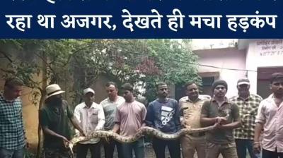 रेस्ट हाउस में फैली दहशत: शिकार की खोज में घुसे अजगर को रेस्क्यू टीम ने निकाला, दो लोगों को साथ मिलकर उठाना पड़ा