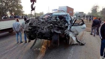 दर्दनाक हादसा: ट्रैक्टर-ट्रॉली में घुसी फॉर्च्यूनर, 5 युवकों की मौत, शवों को निकालने के लिए कटर से काटी गई कार!