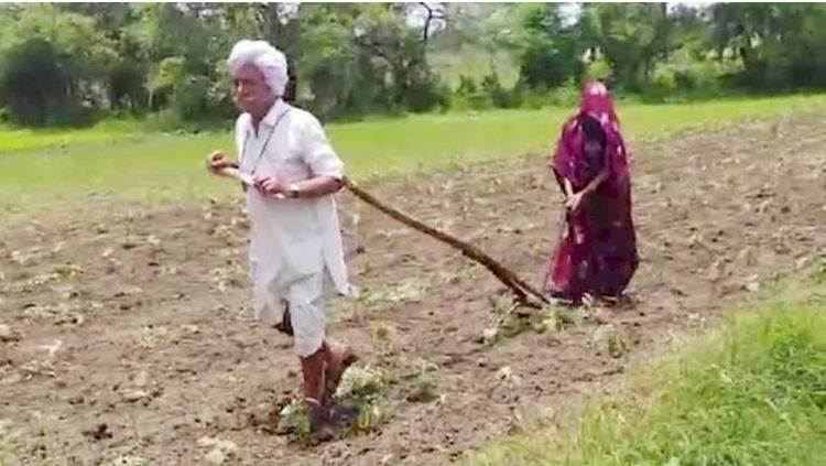 जानकारी के अनुसार केंद्रीय कृषि मंत्री शिवराज सिंह चौहान के गृह जिले सीहोर के अंतर्गत आने वाले ग्राम तज अमरोद में 90 वर्षीय किसान मदर इंडिया की याद दिला रहा है। किसान के पास खेती करने के लिए न ट्रैक्टर और न बैल है। जिसके चलते मजबूर किसान ने खुद खेत में जुताई कर दी।