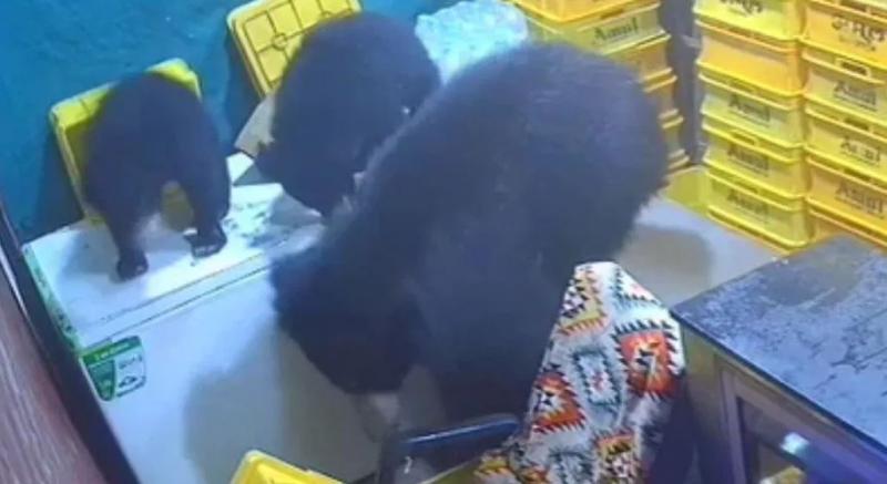 दो सावकों के साथ दुकान में घुसी मादा भालू