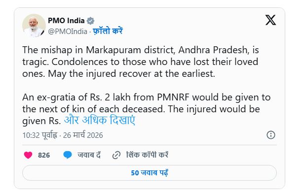 आंध्र प्रदेश में दर्दनाक बस हादसा: सीएम का शोक संदेश, PMO ने राहत राशि का ऐलान