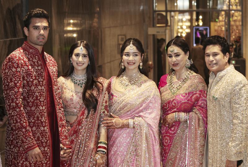 Arjun Tendulkar Wedding: भारत के पूर्व स्टार क्रिकेटर सचिन तेंदुलकर के बेटे अर्जुन तेंदुलकर ने 5 मार्च 2026 को शादी के बंधन में बंध गए हैं. अर्जुन की शादी साउथ मुंबई में एक प्राइवेट समारोह में सानिया चंडोक से हुई. जहां परिवार के सदस्य, करीबी दोस्त और अलग-अलग क्षेत्रों के जाने-माने चेहरे नए जोड़े को बधाई दी. इस कपल ने पिछले साल 25 अगस्त को सगाई की थी.इस हाई प्रोफाइल विवाह समारोह में क्रिकेट से जूड़े कई बड़ी हस्तियां भी शरीक हुई. जिसमें सुनील गावस्कर, एमएस धोनी, युवराज सिंह, जहीर खान, अनिल कुंबले और इरफान पठान जैसे नाम शामिल हैं. भारत के पूर्व कप्तान एम धोनी अपनी पत्नी साक्षी धोनी के साथ समारोह में पहुंचे, और सेलिब्रेशन के लिए तेंदुलकर परिवार के साथ शामिल होकर खूब ध्यान खींचा.भारत के हेड कोच गौतम गंभीर भी अपनी पत्नी नताशा जैन के साथ मौजूद थे, और उसी शाम इंग्लैंड के खिलाफ भारत के टी20 वर्ल्ड कप सेमीफाइनल से पहले मुंबई में अपने समय का पूरा इस्तेमाल किया.इसके अलावा भारतीय क्रिकेट के महान ओपनर सुनील गावस्कर अपनी पत्नी मार्शनील गावस्कर के साथ शामिल हुए, जबकि भारत के पूर्व हेड कोच राहुल द्रविड़, पूर्व कप्तान अनिल कुंबले और भारत के पूर्व कोच रवि शास्त्री खास मेहमानों में शामिल थे. इंटरनेशनल क्रिकेट काउंसिल (ICC) के चेयरमैन जय शाह और भारतीय क्रिकेट टीम के चीफ सिलेक्टर अजीत अगरकर भी अपनी पत्नी के साथ शादी में शामिल हुए.क्रिकेटरों के अलावा बॉलीवुड से भी कई बड़ी हस्तियां विवाह समारोह में शामिल हुए. एक्टर अभिषेक बच्चन अपनी पत्नी ऐश्वर्या राय बच्चन और परिवार के सदस्यों के साथ पहुंचे. इसके अलावा किंग खान शाहरुख खान भी अपनी पत्नी संग समारोह में शरीक हुए.