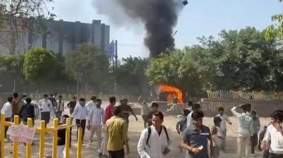 कर्मचारियों के प्रदर्शन ने लिया हिंसक रूप: नोएडा फेज-2 में तोड़फोड़, गाड़ियों में आग, सुरक्षा कड़ी