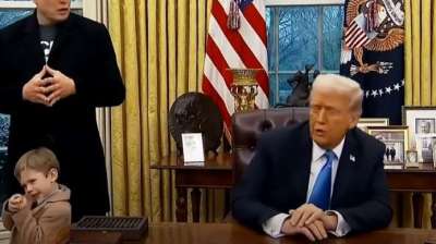 अमेरिका के राष्ट्रपति डोनाल्ड के पदभार ग्रहण करने के बाद दुनिया के सबसे अमीर लोगों में से एक और टेस्ला के मालिक एलन मस्क, अपने बेटे के साथ ट्रंप से...