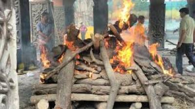 बेटों की आंखों में आंसू, पिता अजित दादा को दी मुखाग्नि
