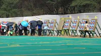 जगतपुरा रेंज पर राष्ट्रीय तीरंदाजी टूर्नामेंट: देशभर से आए 400 तीरंदाज, मैदान में गर्मी से बेहाल खिलाड़ी