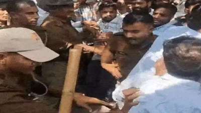 सीकर में कांग्रेस कार्यकर्ताओं ने जबरन कलेक्ट्रेट में घुसने की कोशिश की