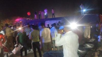 मथुरा में बड़ा सड़क हादसा: तेज रफ्तार स्लीपर बस पलटी, चीख-पुकार के बीच 20+ लोग जख्मी