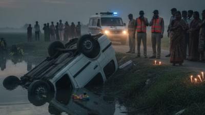 दर्दनाक दुर्घटना में एक ही परिवार के चार लोगों की मौत, अनियत्रिंत होकर कार तालाब में डूबी