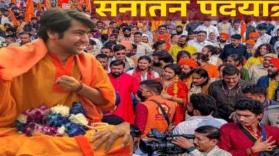 राजा भैया ने थामा बाबा बागेश्वर का हाथ, पदयात्रा में बेटों के साथ दिया साथ
